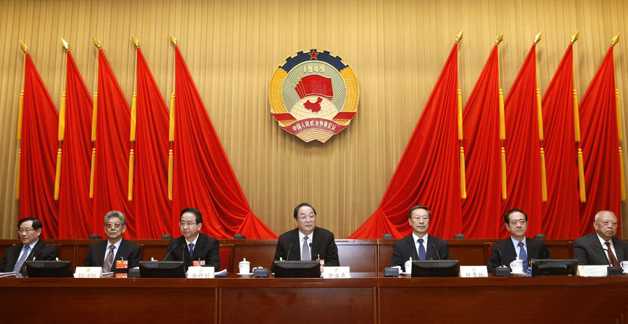3月11日,全國政協十二屆一次會議主席團第三次會議在北京舉行。俞正聲主持會議。新華社記者 鞠鵬 攝