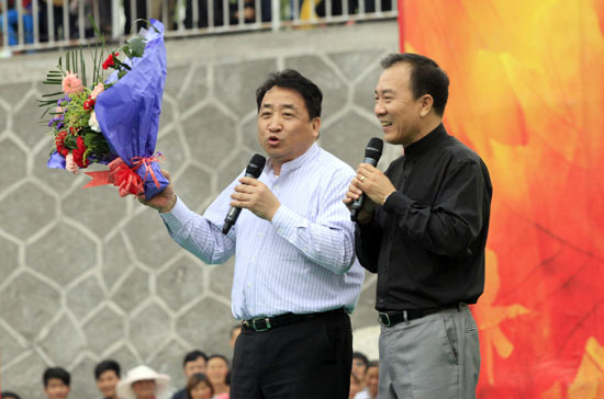 著名相聲表演藝術(shù)家姜昆、戴志誠(chéng)表演相聲《笑在其外》。中國(guó)文藝網(wǎng) 白偉 攝