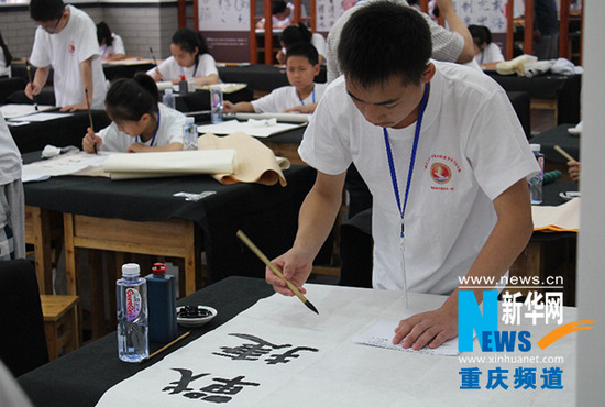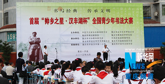 昨日,首屆“帥鄉之星?漢豐湖杯”全國青少年書法大賽在重慶市開縣拉開帷幕。活動由60名獲獎作者現場命題決賽、評委評審和頒獎儀式以及500余名師生現場書法展示等部分組成。