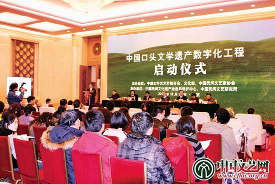 12月30日,中國文聯(lián)、文化部、中國民協(xié)在北京人民大會堂正式啟動中國口頭文學(xué)遺產(chǎn)數(shù)字化工程。該工程將中國民協(xié)成立60年來組織全國民間文藝工作者采集、記錄的所有民間文學(xué)文字和圖片資料進行數(shù)字化存錄,包括全國各地縣(市、區(qū)、旗)和鄉(xiāng)(鎮(zhèn)、蘇木、街道)的民間文藝普查記錄的原始文字資料及其所附的第一手民間文化記憶與信息,總字數(shù)達8.4億,是迄今為止我國口頭文學(xué)資料最為系統(tǒng)的民間文學(xué)數(shù)據(jù)庫。