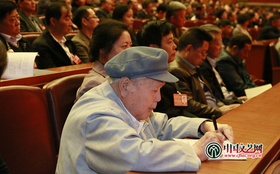 劉文西代表在會場認真記錄 中國文藝網 周春桃 攝