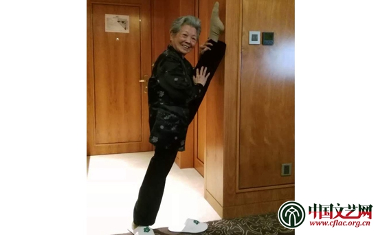 年近八十的夏菊花先生在第十次全國文代會會議駐地“練功” 中國文藝網 秦蘭珺 攝