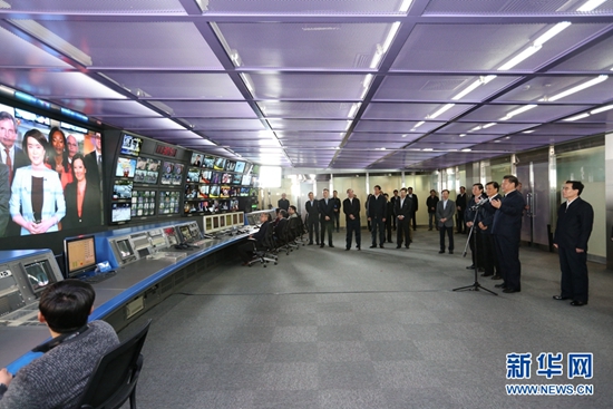 臨近中午,習近平來到中央電視臺。他聽取中央電視臺板塊業務、媒體融合等情況介紹,到總控中心觀看電視傳播能力建設視頻展示,在《新聞聯播》演播室、導控室向主持人和工作人員了解新聞制作導播流程,并親自切換按鈕體驗模擬播出。習近平指出,中央電視臺每天面對數億觀眾,一定要緊跟時代、放眼全球,多設計一些融思想性、藝術性于一體的好欄目,多創辦一些膾炙人口、寓教于樂的好節目。