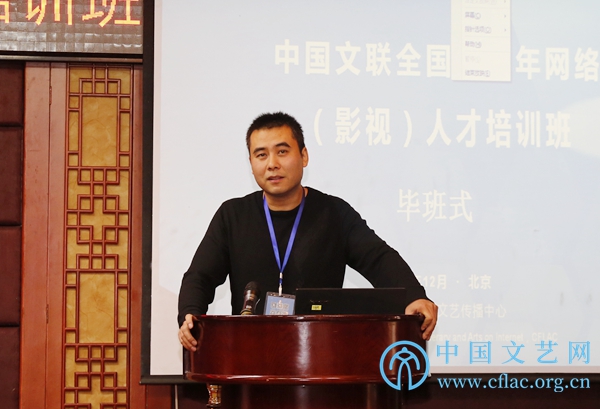 12月21日晚,全國中青年網絡(影視)人才培訓班的學員以“新時代、新影視”為主題,進行了分組討論,學員們踴躍發言,氣氛熱烈。圖為第四組學員代表楊軍在22日舉行的畢班式上發言。