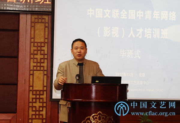 12月21日晚,全國中青年網絡(影視)人才培訓班的學員以“新時代、新影視”為主題,進行了分組討論,學員們踴躍發言,氣氛熱烈。圖為第一組學員代表魏軍在22日舉行的畢班式上發言。