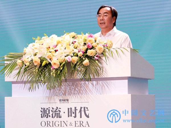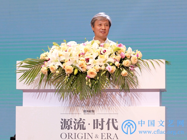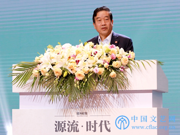 5月25日,“源流·時(shí)代”以王羲之為中心的歷代法書與當(dāng)前書法創(chuàng)作暨紹興論壇開幕,圖為中國文聯(lián)黨組書記、副主席李屹在開幕式上致辭。中國文藝網(wǎng) 韓雪竹攝