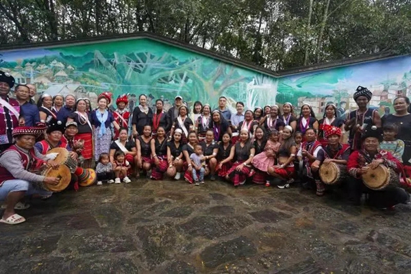 采風媒體團隊與阿佤村民在“阿佤人民唱新歌”發源地合照