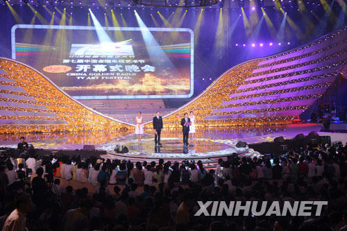 隨著《黃土高坡》《酒干倘賣無》等經(jīng)典老歌的唱響,主題為“為奧運慶功”的第七屆中國金鷹電視藝術(shù)節(jié)昨晚在長沙開幕。考慮到冰災(zāi)、地震等因素,原來長達(dá)一周的金鷹節(jié)今年縮減為兩天。開幕式上,經(jīng)典電視劇和主題歌重現(xiàn)了中國電視劇50年光輝歷程。