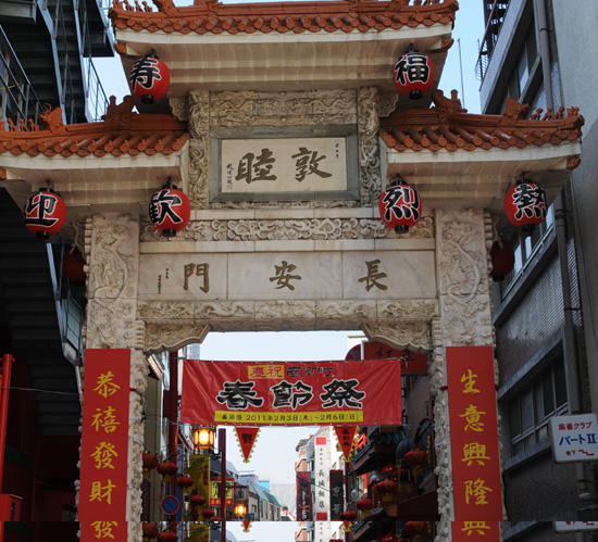 神戶中華街-南京街入口處貼上了喜慶的春聯(lián)