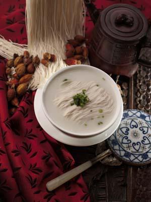 “龍須面”是我國北方傳統(tǒng)風味筵席面點品種之一,是從山東抻面演變出來的精品,至今已有300多年的歷史。相傳明代御膳房里有位廚師,在立春吃春餅的日子里,做了一種細如發(fā)絲的面條,宛如龍須,皇帝胃口大開,邊品嘗,邊贊賞,龍顏大悅,贊不絕口。從此,這種炸制的細點便成了一種非常時尚的點心。由于抻面的姿勢,如氣壯山河一般,抻出的面細如發(fā)絲,猶如交織在一起的龍須,故名龍須面。