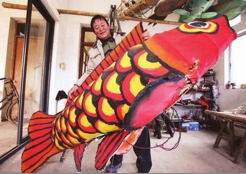 看著即將完工的鯉魚彩燈,費土根開心地笑了
