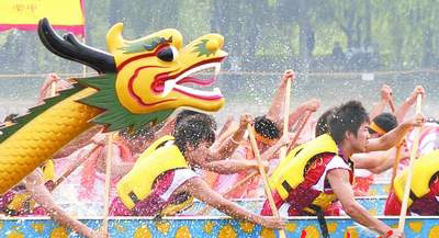 其實 ,“龍舟競渡”早在戰國時代就有了。在急鼓聲中劃刻成龍形的獨木舟,做競渡游戲,以娛神與樂人,是祭儀中半宗教性、半娛樂性的節目。 后來,賽龍舟除紀念屈原之外,在各地人們還付予了不同的寓意。江浙地區劃龍舟,兼有紀念當地出生的近代女民主革命家秋瑾的意義。夜龍船上,張燈結彩,來往穿梭,水上水下,情景動人,別具情趣。貴州苗族人民在農歷五月二十五至二十八舉行“龍船節”,以慶祝插秧勝利和預祝五谷豐登。云南傣族同胞則在潑水節賽龍舟,紀念古代英雄巖紅窩。不同民族、不同地區,劃龍舟的傳說有所不同。直到今天在南方的不少臨江河湖海的地區,每年端節都要舉行富有自己特色的龍舟競賽活動。清乾隆二十九年(1736年),臺灣開始舉行龍舟競渡。當時臺灣知府蔣元君曾在臺南市法華寺半月池主持友誼賽。現在臺灣每年五月五日都舉行龍舟競賽。在香港,也舉行競渡。