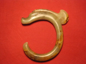 在東北紅山文化中出土的“玉豬龍”,頭部似豬首,身體呈“C”形。所以,有學者認為:豬是龍的起源,因為在人類最早馴化的六畜之中,只有豬的繁殖能力最強,而強大的繁殖能力,可以使氏族生生不息,在任何災害面前代代延續下去。這也可以從“家”的甲骨文字形中窺知一二:為什么在六畜之中,只用房屋下面有豬來表示家呢?因為豬的數量大,繁殖能力強,代表著古人的財富和祈求,這和半坡人以魚龍為圖騰出于同一理想:希望氏族代代繁衍,生生不息。只不過半坡人希望擁有超自然力,而紅山人希望增強自身的生存能力而已。從形態上看,“C”形玉豬龍似動物胚胎,也屬生殖崇拜和圖騰崇拜的范疇。