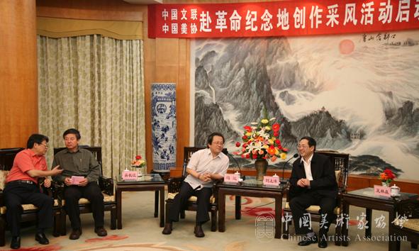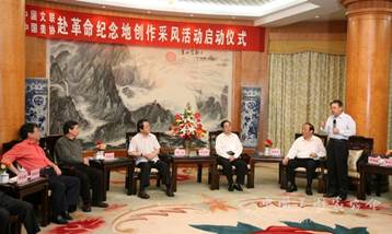 2010年5月15日中午,由中國文聯(lián)副主席馮遠、中國美協(xié)分黨組書記吳長江帶隊,中國文聯(lián)、中國美協(xié)“赴革命紀(jì)念地深入生活創(chuàng)作”采風(fēng)團,來到具有悠久歷史文化和革命傳統(tǒng)的江西南昌。采風(fēng)團到達首站江西南昌拉開了中國文聯(lián)、中國美協(xié)2010年赴革命紀(jì)念地創(chuàng)作采風(fēng)活動的序幕。本次活動還將安排美術(shù)家赴延安地區(qū)、貴州遵義地區(qū);甘肅會寧、臘子口地區(qū),以及河北西柏坡的創(chuàng)作采風(fēng)。為了這次集中報道此次活動,主辦方還特邀請了部分中央和地方媒體參與并隨時報道這次寫生活動。