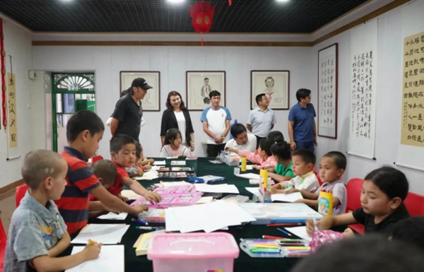 在和田期間,陳先發(fā)一行前往安徽省駐新疆援建指揮部,與和田地委副書記、安徽省援疆指揮部指揮長(zhǎng)張庚家就“文化潤(rùn)疆”工作進(jìn)行了匯報(bào)溝通,并深入到皮山縣文化館、皮山縣喬達(dá)鄉(xiāng)阿亞格喬達(dá)村、皮山縣新時(shí)代文明實(shí)踐中心、皮山縣安徽實(shí)驗(yàn)學(xué)校、墨玉縣桑皮紙園、和田地區(qū)文聯(lián)、和田博物館、和田書畫院進(jìn)行調(diào)研,與和田地區(qū)、皮山縣文藝工作者代表進(jìn)行座談交流。