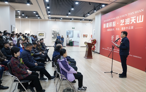 11月25日,由安徽省文聯(lián)、新疆文聯(lián)共同主辦的“皖疆同心·藝潤天山”安徽省美術(shù)書法攝影作品展在新疆文聯(lián)展廳開幕。林勇和鄶振明分別致辭,安徽省美協(xié)副主席、秘書長丁力代表安徽參展藝術(shù)家講話。李斌及新疆文聯(lián)、新疆生產(chǎn)建設(shè)兵團(tuán)的文藝家代表,安徽省文聯(lián)文藝小分隊(duì)成員,新疆部分藝術(shù)院校師生代表200余人參加開幕式并觀展。