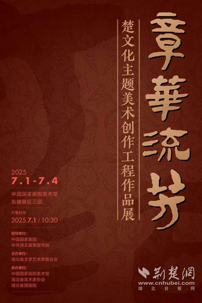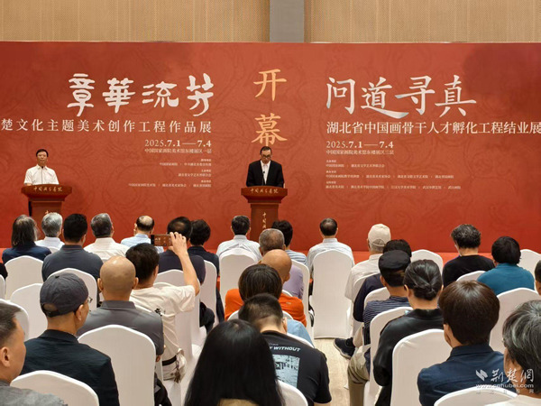 荊楚網(湖北日報網)訊 7月1日,由中國國家畫院、中共湖北省委宣傳部指導,湖北省文學藝術界聯合會主辦,中國國家畫院教學培訓部、中國國家畫院美術館、湖北省美協、湖北省文聯文學藝術院、湖北省國畫院承辦的“章華流芳——楚文化主題美術創作工程作品展”暨“問道尋真——湖北省中國畫骨干人才孵化工程結業展”在中國國家畫院美術館隆重開幕。
