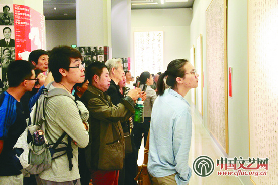 當代書法展上人頭攢動、摩肩接踵的場面屢見不鮮。圖為全國首屆“三名工程”書法作品展現場