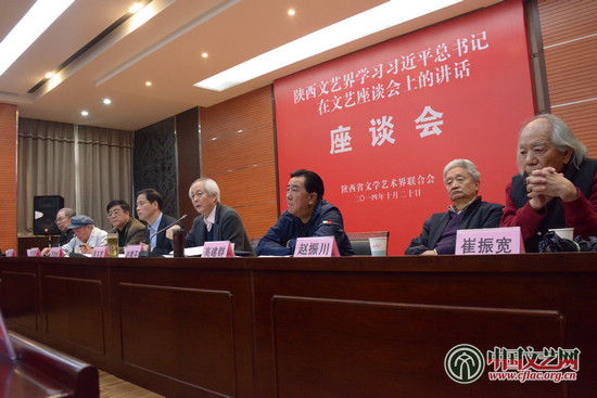 中國音樂家協(xié)會主席、陜西省文聯(lián)主席趙季平,陜西省作協(xié)副主席高建群,中國美協(xié)顧問、陜西省美協(xié)名譽主席劉文西,陜西省文聯(lián)副主席劉遠,陜西省書協(xié)名譽主席吳三大,陜西省美協(xié)名譽主席趙振川,陜西省美協(xié)副主席、西安美術學院院長郭線廬,陜西廣播電視臺著名導演萬盛華,陜西省文藝評論家協(xié)會主席李震,西安秦腔劇院易俗社社長慧敏莉,著名文藝評論家李星,陜西省曲藝家協(xié)會副主席王茵等文藝家代表先后發(fā)言,暢談了學習習近平總書記講話的體會。