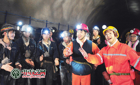 在“我們的沃土我們的夢(mèng)”千名文藝家下基層采風(fēng)創(chuàng)作活動(dòng)中,藝術(shù)家在六百米井下為礦工演出