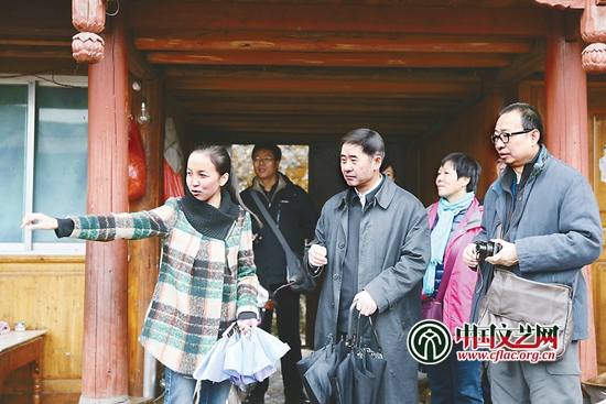 中國民協(xié)分黨組書記、駐會副主席羅楊和副主席潘魯生親任領(lǐng)隊,對列入國家傳統(tǒng)村落名錄的和順鎮(zhèn)水碓村、大莊社區(qū)、十字路社區(qū),騰越鎮(zhèn)熱海社區(qū)下綺羅、董官村,固東鎮(zhèn)江東銀杏村等傳統(tǒng)村落的保護現(xiàn)狀、存在問題和對策方法進行了深入的了解與探討。當(dāng)考察團隊與村鎮(zhèn)主管干部、村里居民座談交流、促膝交談時,當(dāng)羅楊書記拿起針線與百姓一道體驗絨繡手工藝時,讓我們對騰沖獨特的歷史地貌、村落文化有了進一步了解,更與騰沖人的情感與精神世界有了深切溝通。正如清華大學(xué)李秋香教授所說:“邊城騰沖,由于獨特的地理環(huán)境,這里的漢人接收了大量的少數(shù)民族文化,這里的建筑在空間格局、建筑形制上表現(xiàn)出了漢族文化與少數(shù)民族文化、緬甸文化的融合,以前的關(guān)注度不夠,這次收獲很大。”