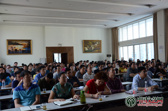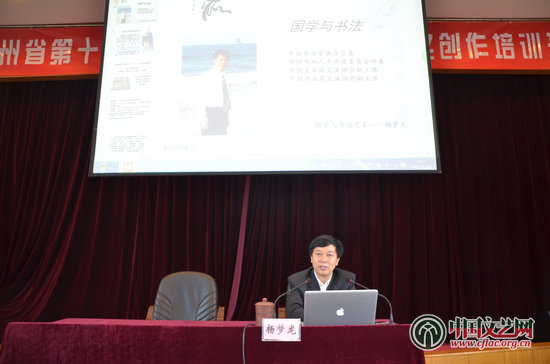書法培訓(xùn)課上,楊夢龍以題目《國學(xué)與書法》為書法愛好者們精彩授課,他講述了五個方面的書法知識:一是國學(xué)與書法的關(guān)系;二是中國書法的由來和種類;三是中國書法歷史上的重點人物;四是如何看待中國書法藝術(shù);五是如何欣賞書畫作品。楊夢龍還向書畫愛好者介紹了部分自己的書畫作品,并與大家進(jìn)行交流。楊夢龍的精彩授課吸引了在場的聽課者,大家都認(rèn)真聽課,這些來自全省各企業(yè)的書法愛好者十分積極,連教室過道上也擠滿了聽課的學(xué)生。來自貴州省地礦局的書法愛好者說:“省文聯(lián)專門為我們企業(yè)書法愛好者舉辦這樣的培訓(xùn)班,機會難得,我們要珍惜這樣的機會,把文藝的精神和文藝的美帶到我們的工作中去”。