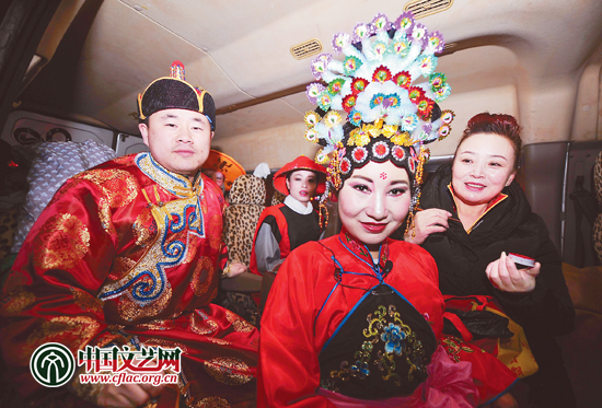 被稱為“文藝輕騎兵”的內蒙古托克托縣烏蘭牧騎的演員們在為牧民表演前合影 新華社發 連 振 攝