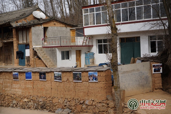 這第一份禮物就是將2016中國(guó)武都公益攝影展搬到了這里。這是村里第一次舉辦攝影展覽。村民們自己動(dòng)手,在院子的土墻上、在樹樁上拉起鐵絲,釘上釘子,將一幅幅照片裝點(diǎn)在村莊的各個(gè)角落。土墻映襯著祖國(guó)各地的秀麗景色,磚墻上懸掛著近年來的好人好事,大閱兵威武雄壯的行列和武器整齊排列在村服務(wù)部的外墻上。媽媽給調(diào)皮的孩子講解,老人好奇地觀望。賞心悅目的圖片和充滿正能量的話語,是上尹村新年的一道新風(fēng)景。這次展覽讓村民們感受到中國(guó)夢(mèng)離他們并不遙遠(yuǎn),每個(gè)平凡人都有自己的中國(guó)夢(mèng),為了更加美好和繁榮的明天,小山村里也在繼續(xù)著自己的追夢(mèng)故事。