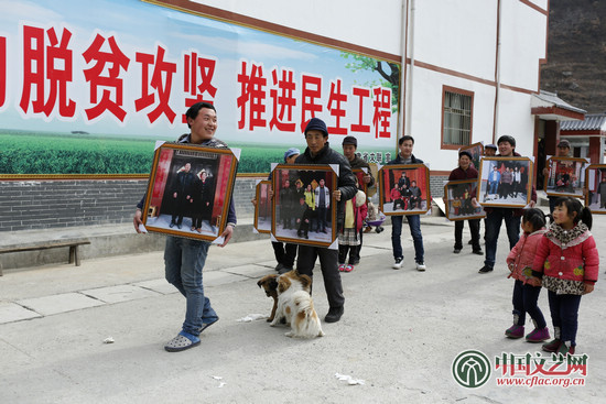 聽說北京來的攝影家們又來給大家免費(fèi)拍全家福,村民們奔走相告。一時(shí)間村廣場(chǎng)上人聲鼎沸。元旦期間第一批拍攝好的全家福已經(jīng)裝裱完成,擺滿了廣場(chǎng)。村民們認(rèn)出了這是自家的照片,笑著鬧著評(píng)論著,歡歡喜喜地搬回家。
