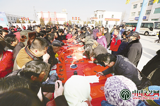 2016年1月21日,寧夏文化科技衛生“三下鄉”活動。圖為書法家為群眾寫春聯