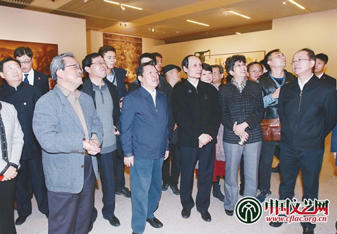 中國文聯主席孫家正,中國文聯黨組書記、副主席趙實,中宣部副部長景俊海,全國政協文史與學習委員會副主任翟衛華,中國文聯黨組副書記、副主席李屹,中國文聯副主席、中央文史研究館常務副館長馮遠,文化部副部長董偉,中國文聯黨組成員、副主席夏潮、李前光、郭運德,中國文聯副主席楊承志,中國文聯副主席、中國美協主席劉大為,清華大學黨委書記陳旭,國家博物館館長呂章申,中國文聯黨組成員、書記處書記陳建文,以及湯恒、王家新、諸迪、徐里等有關方面負責人和多位美術界人士出席展覽開幕式。開幕式由中國文聯黨組成員、副主席左中一主持。
