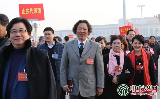 浙江、山東代表走向會場 中國文藝網(wǎng) 王渝 攝