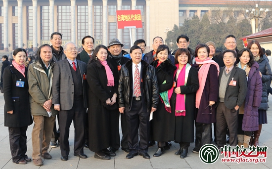 臺灣地區(qū)代表團在會場外合影 中國文藝網(wǎng) 王渝 攝