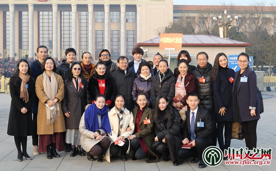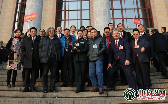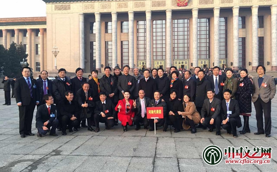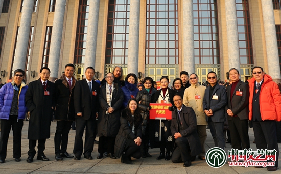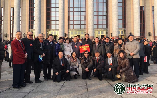 香港特別行政區(qū)代表團在會場外合影 中國文藝網(wǎng) 高晴 攝