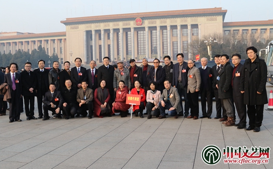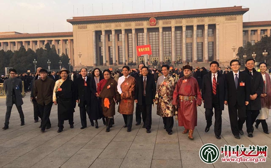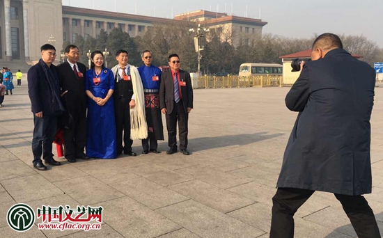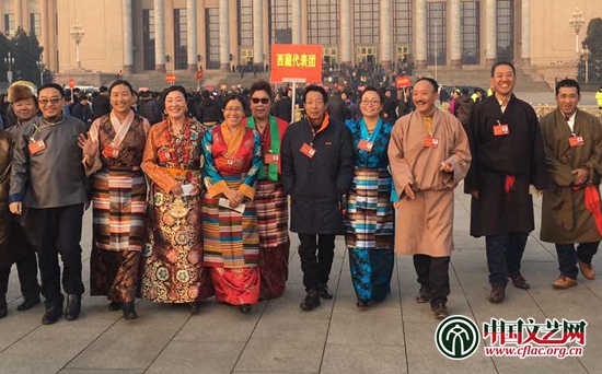 西藏代表團在會場外合影 中國文藝網(wǎng) 冉茂金 攝