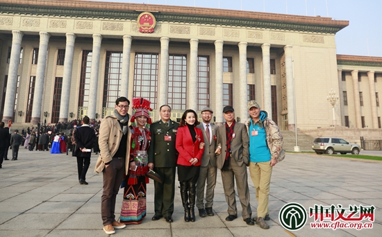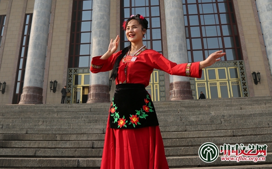 少數(shù)民族代表在會場外合影 中國文藝網(wǎng) 陳思靜 攝