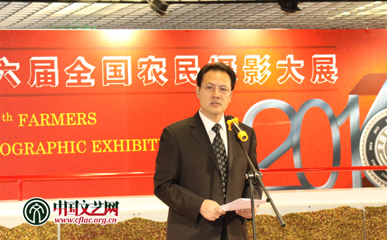 王瑤在致辭中表示,十年前在十六屆五中全會吹響新農村建設的大背景下,中國攝協推出了“新農村建設紀實影像工程”的新舉措。十年來工程得到了中央領導、中宣部、中國文聯、農業部和社會各界的大力支持。共有一萬多位攝影人參與,其中農民攝影家四千余人,共收到19.4萬余幅攝影作品。十年來取得的成就主要體現在三個方面:一是讓農民朋友們分享了改革開放、尤其是文化繁榮發展的成果。二是這些影像見證了新農村建設的成果,新農村的巨大變化。三是農民攝影大展也紀錄了攝影事業繁榮發展的進程。中國攝協還為農民打工子弟的孩子建立了攝影曙光學校,讓孩子從小就拿起相機,紀錄生活中的點滴。她表示,今后中國攝協將一如既往地響應習近平總書記的號召,尤其是總書記在文藝工作座談會上的講話和十次文代會上講話,團結引領廣大的攝影人,深入生活、扎根人民,在火熱的新農村建設中拍攝更多更好的攝影作品,做“中國夢”的紀錄者,做“美麗中國”的建設者。