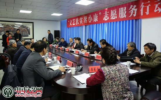 中國文聯黨組書記、副主席趙實,中國文聯黨組成員、副主席李前光一行與參加“文藝扶貧奔小康”志愿服務行動民間文藝培訓班的文藝志愿者、學員代表座談。中國文藝網 周春桃 攝