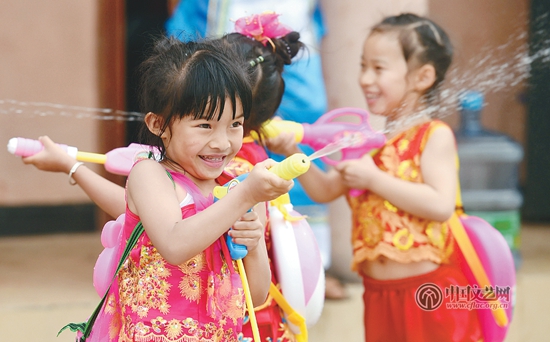 云南景谷傣族兒童歡度潑水節 新華社發 藺以光 攝