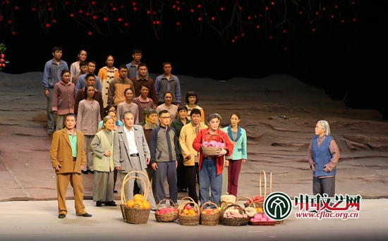 從果林間到山坡上,一個個鄉間地頭,留下了李保國太多的生命足跡。記者了解到,僅其中有一年,李保國科研團隊就有30多次到崗底,20多次到南和紅樹莓基地,20多次到綠嶺,10多次到平山葫蘆峪,7次到灤縣,7次到灤平,6次赴易縣,5次到青龍……在河北梆子《李保國》中,舞臺上的山坡布景、石墩碾子和漫山遍野的蘋果樹,把觀眾一下子帶入到了現場,更看到了李保國改變荒山野嶺為蔥蔥果園的“成績單”。