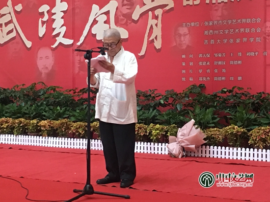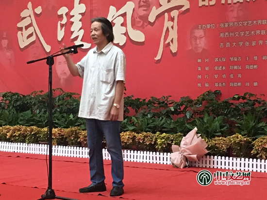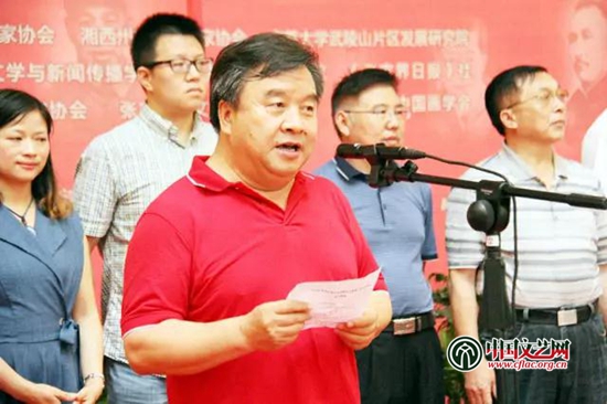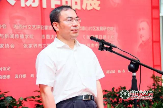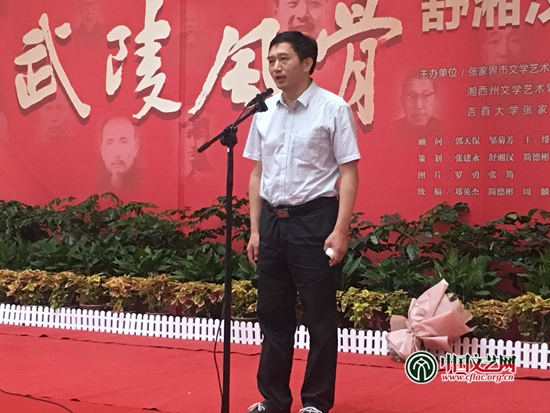 中國(guó)美術(shù)家協(xié)會(huì)會(huì)員、張家界市美術(shù)家協(xié)會(huì)主席、吉首大學(xué)張家界學(xué)院教授舒湘漢致辭