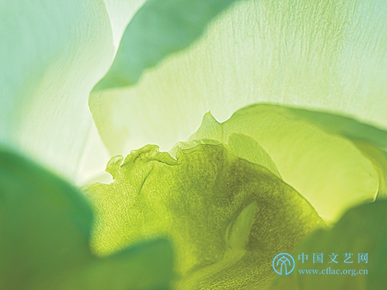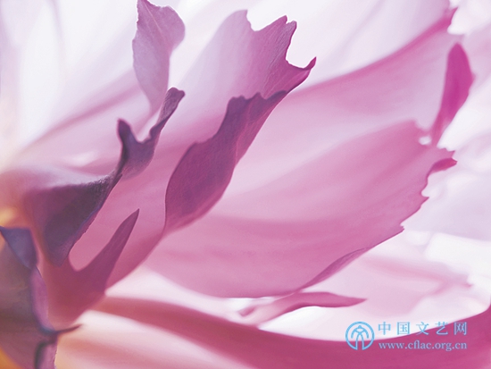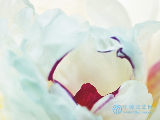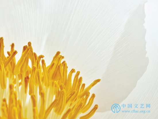 微距拍攝中的偶然性、隨機性是無法完全消除的,王昆峰的拍攝往往不是看到了什么才拍,而是在拍的過程中才看到是什么,甚至在拍攝放大后才完全看到拍了什么。因此這些作品許多是無法重復的,這會增加作品的價值,也使每一次拍攝都有面對未知的緊張與期待。他不依靠后期,力求充分顯示攝影這一視覺手段的固有特征,影像在后期只做剪裁和整體微調。他拒絕了使用多次曝光的建議,他說攝影就要在“咔嚓”一下中完成。全部拍攝他都始終“固執(zhí)己見”。他把激情洋溢的拍攝置于嚴謹的科學精神之上,把高像素相機的表現力盡量地發(fā)揮出來,并在逐步得心應手的實驗探索中,盡量比別人走得更遠,這使他的微距牡丹最終打上自己的烙印,成為自己“特殊的說法”。從王昆峰的作品中,我們可以看出他是一個很理性又很執(zhí)著的人,他的用心和耐心都滲透在《絲路花語》之中,讓我們感動。