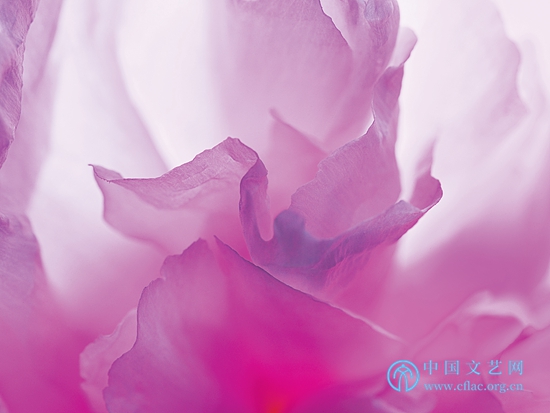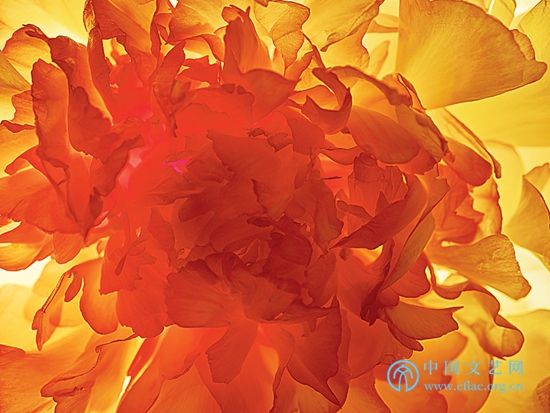 當王昆峰選擇牡丹以及飛思XF100MP相機、微距鏡頭并在影棚拍攝的時候,他的目的就已經十分明確。正如約翰·伯格所說:藝術家對題材的選擇基于某些理由或發(fā)現的意義,當題材選定之后,創(chuàng)作本身的作用就是傳達及證明選擇的意義,所以題材開始于藝術家為了“特殊的說法”所選擇的事物。他還特別指出:對于藝術家而言,真正特殊的、有意義的是純粹視覺上的——色彩及形式。通過微觀牡丹,建構一種超越尋常觀看經驗的、純粹的視覺形式,形成自己的“特殊說法”,并努力達到技術的極致,在牡丹或花卉攝影中實現創(chuàng)新或突破,這是王昆峰題材選擇和拍攝實踐的意義。