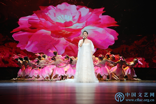 4月26日,第29屆中國戲劇梅花獎和第23屆曹禺劇本獎在廣西南寧頒獎。圖為新晉梅花獎獲得者、著名歌唱家雷佳演唱《花開新時代》。中國文藝網 郝紅霞 攝