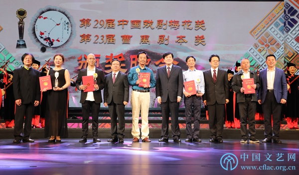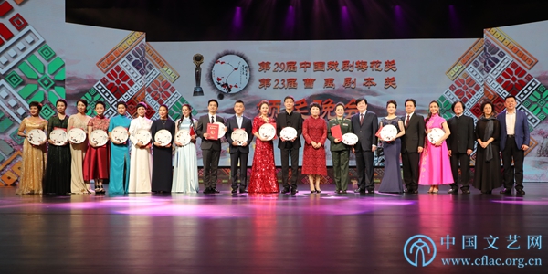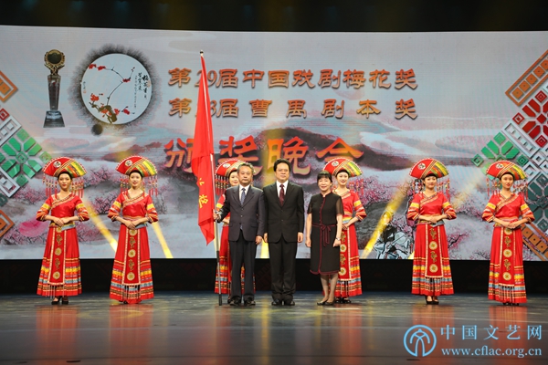 中國文聯黨組書記、副主席李屹出席閉幕式并為獲獎者頒獎。出席閉幕式的還有廣西壯族自治區黨委常委、宣傳部長范曉莉,自治區人大常委會副主任盧獻匾,自治區人民政府副主席李彬,自治區政協副主席陳剛,中國劇協分黨組書記、駐會副主席陳彥以及“梅花獎”、曹禺劇本獎評委,下一屆“梅花獎”主辦城市南京有關方面負責人與南寧市千余名觀眾一同觀看頒獎晚會。