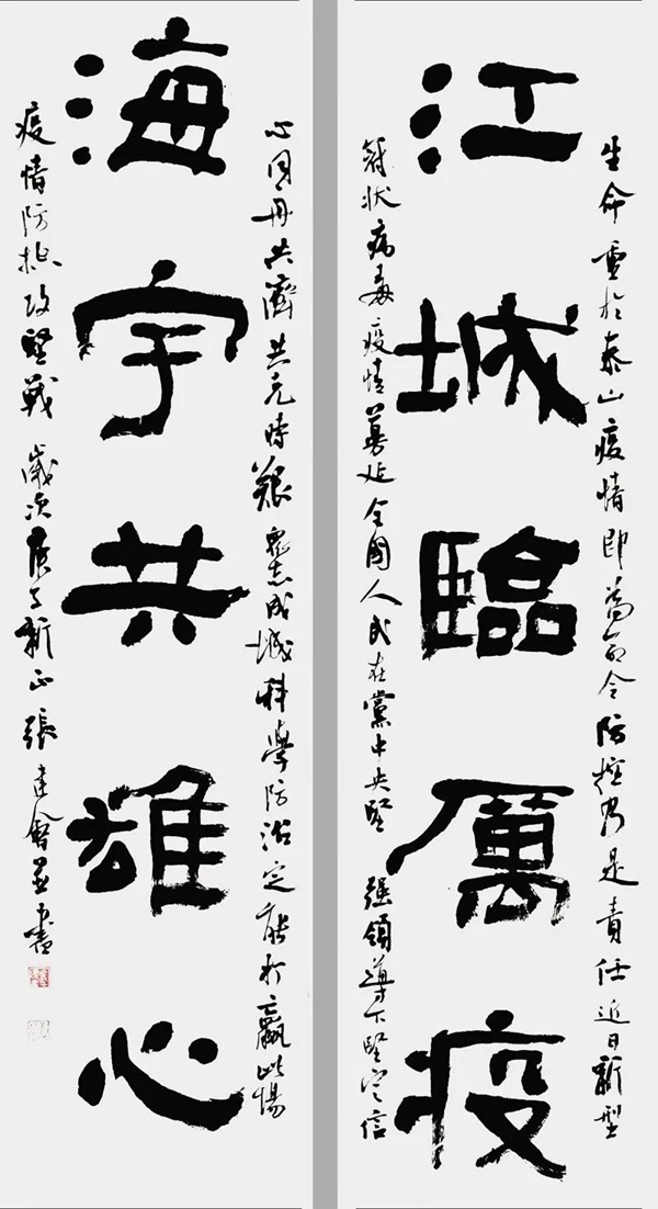 此外,天津市楹聯學會也向全市楹聯組織和聯友發出了《關于廣泛開展防控感染、抗擊疫情楹聯創作的通知》,號召全市各級楹聯組織和廣大聯友迅速行動起來,充分運用兩行文字藝術表現形式,反映在黨的堅強領導下,天津各條戰線防控抗擊疫情的感人事跡,鼓舞士氣、振奮精神,表達津門廣大聯友與全市人民并肩作戰、共度時艱的決心和信心。征選出的優秀作品,將邀請書法名家統一書寫裝裱后轉贈給防控抗擊疫情突出貢獻者。