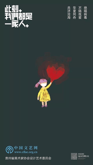 疫情面前,心手相連。貴州省美協(xié)設(shè)計(jì)藝委會(huì)與“絕對(duì)貴州”創(chuàng)意設(shè)計(jì)聯(lián)盟團(tuán)隊(duì)共同發(fā)起“此刻,我們都是一家人——用設(shè)計(jì)聲援武漢”行動(dòng)。短短4天多時(shí)間,省內(nèi)外設(shè)計(jì)師積極響應(yīng),用200多幅設(shè)計(jì)作品,表達(dá)了“我們都是一家人”的堅(jiān)定信念。
