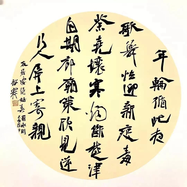 年輪循此夜,歌舞怯迎新。疫毒荼堯壤,寒煙斷楚津。自期廊廟策,欣見逆行人。屏上寄親友,居安待好春。