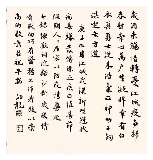 歲酒未觴情轉(zhuǎn)憂,江城疫事掃春愁。牽心萬戶共凝眸,幸有白衣真勇士。從來浩氣正神州,千鈞謀定意方遒。