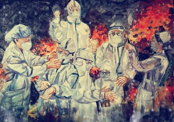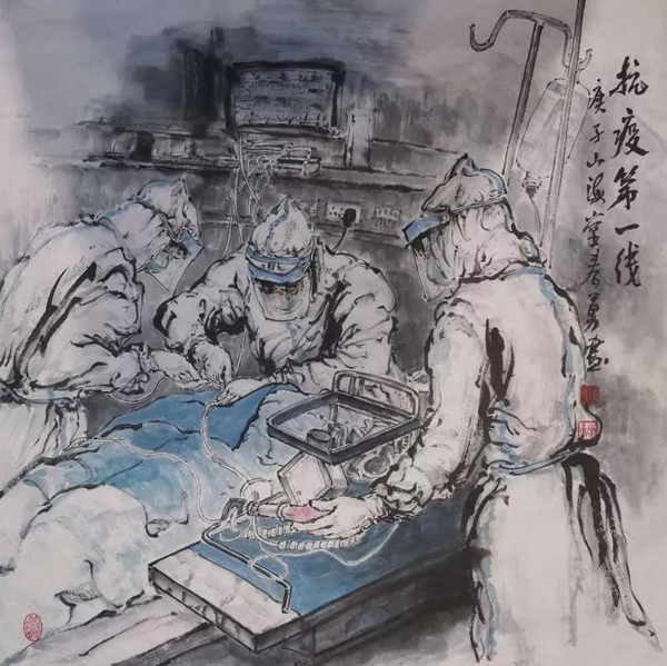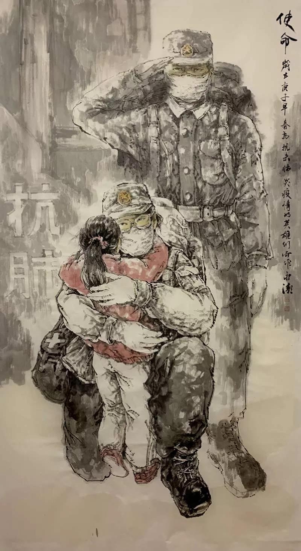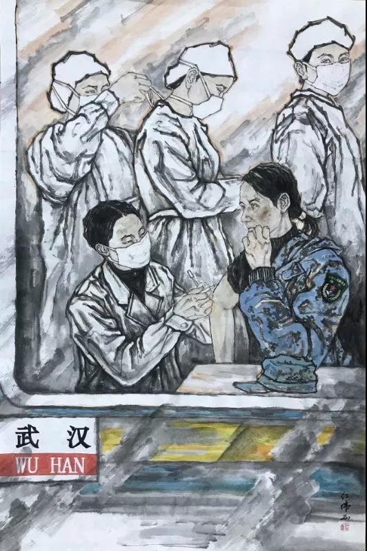 莊紅偉 國畫《最美逆行·白衣鐵軍》
